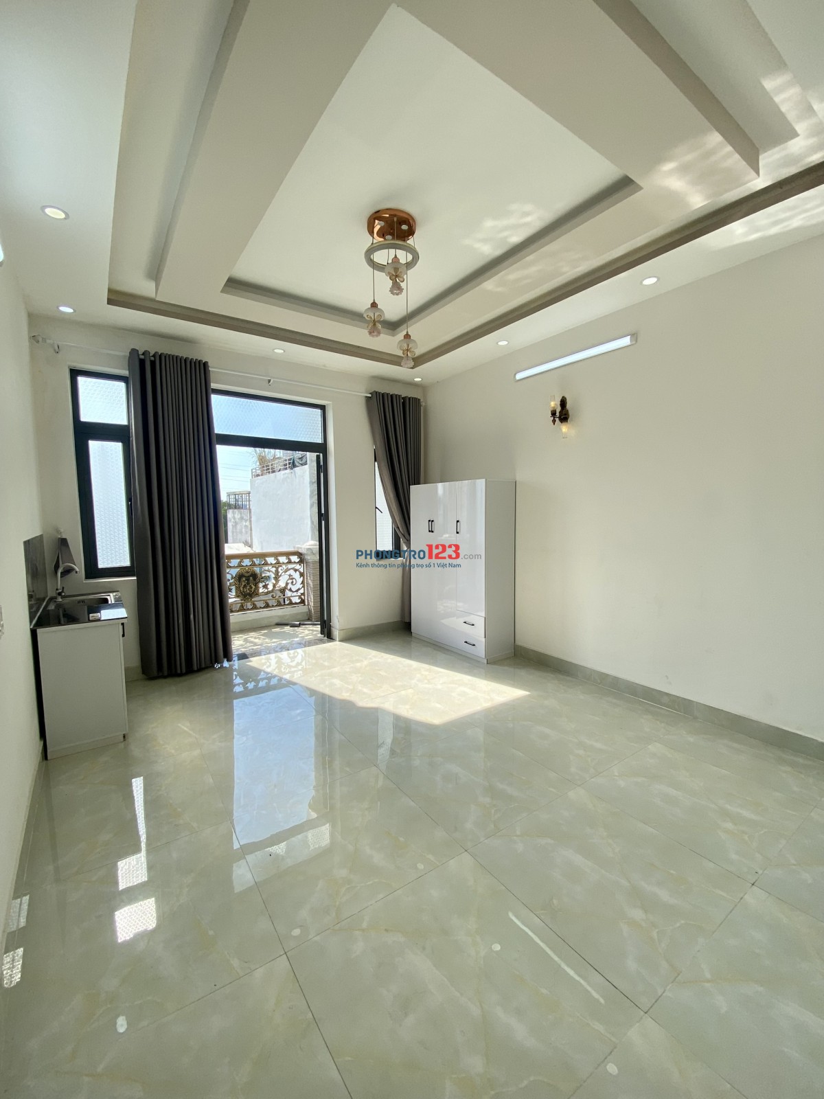 Phong studio noi that co ban co san (May lanh, tu do, ke bep).
