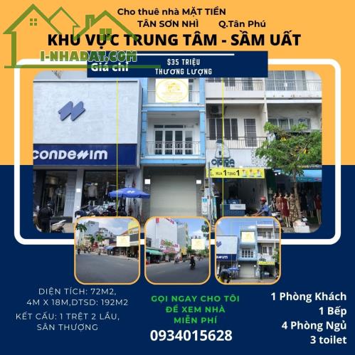 Cho thuê nhà mặt tiền tân sơn nhì 72m2, 2lầu, 35triệu - ... 35 triệu